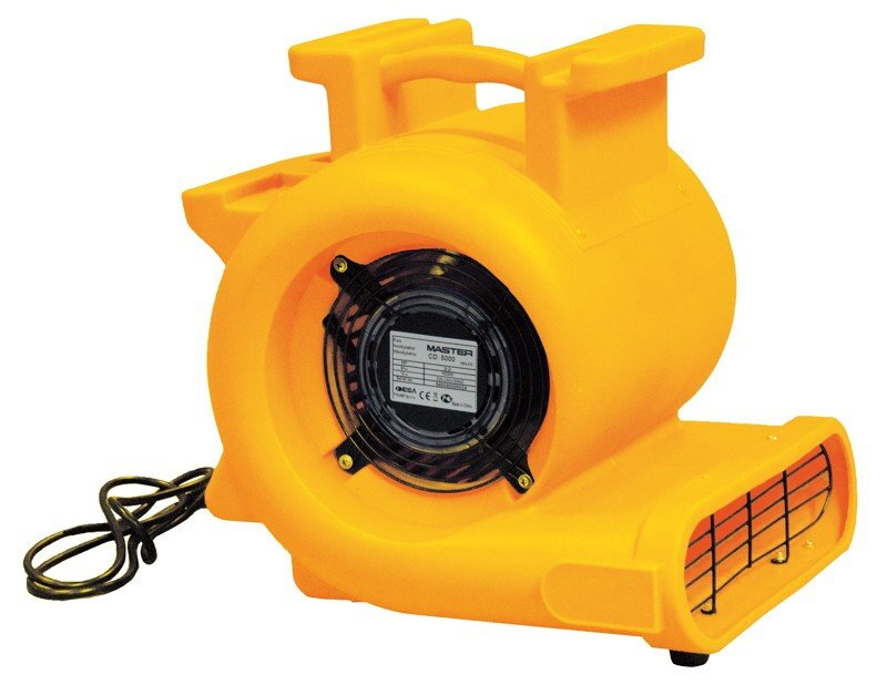 Mobilní ventilátor Master CD 5000 zajistí vysokou rychlost proudění vzduchu v prostoru a to se pozitivně projevuje při vysoušení budov výstavby po mokrých procesech nebo budov zasažených vodou. Pomocí zploštělého otvoru pro výfuk vzduchu je možné nasměrovat proud vzduchu do špatně přístupných míst např. pod kuchyňskou linku. Víření vzduchu prostorem zajistí rovnoměrné vysoušení a to je velmi důležité například před pokládkou nových podlah.